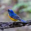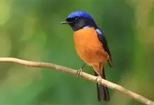 棕腹大仙鹟:体重24-28克,体长15-17厘米,是一种小型的色彩亮丽的鹟。雄鸟上体深蓝,下体棕色,脸黑,额、颈侧小块斑、翼角及腰部亮丽闪辉蓝色。与棕腹仙鹟易混淆,区别在色彩较暗。雌鸟灰褐,…全部>>