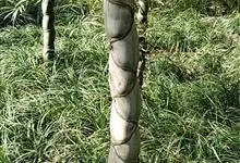 龟甲竹 Mitford),竿高达20余米,粗者可达20余厘米,幼竿密被细柔毛及厚白粉,箨环有毛,老竿无毛,并由绿色渐变为绿黄色;基部节间甚短而向上则逐节较长;竿环不明显,低于箨环或在细竿中隆起。…全部>>