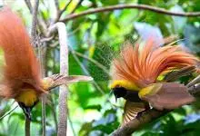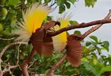 大极乐鸟是极乐鸟属中最大的鸟种。成年雄鸟体长可达到43厘米,雌性可达35厘米。雄鸟的额、颊、喉等墨绿色;头、颈黄色;上体暗赤栗色;腹部葡萄红色,胁部有长饰羽,其基部橙黄,中部黄色,…全部>>