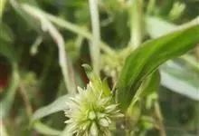 鳢肠 L.)是菊科,鳢肠属一年生草本植物。茎直立,高可达60厘米,叶片长圆状披针形或披针形,无柄或有极短的柄,两面被密硬糙毛。头状花序,有细花序梗;总苞球状钟形,总苞片绿色,草质,长圆形或长圆状披针形,…全部>>
