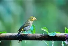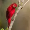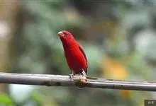血雀雀科朱雀属鸟类,体重36-49克;体长155-182毫米。雄鸟除眼先、翼与尾为黑色外,通体为鲜红色;嘴鲜黄;雌鸟暗橄榄绿色,羽端较淡或带黄色;腰鲜黄;嘴较暗。虹膜褐色;嘴黄色;腿和脚褐色。…全部>>