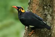 金冠树八哥为椋鸟科树八哥属的鸟类。体长约23厘米,闪辉黑色。特征为具翼斑及颏黄色,脸颊裸露皮肤粉黄色。分布于印度、缅甸、泰国以及中国大陆的云南、广东等地。…全部>>