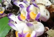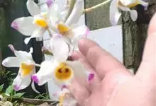 肿节石斛,是兰科石斛属多年生草本植物。肿节石斛茎斜立或下垂,肉质,圆柱形;叶纸质,长圆形;花序生于已落叶老茎上部,花白色,上部紫红色,有香气;花瓣宽长圆形,唇瓣白色,中部以下金黄色,上部紫红色,…全部>>