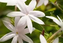 素馨花,木犀科素馨属多年生的攀援灌木植物。攀援灌木,小枝圆柱形,具棱或沟;叶对生,叶轴常具窄翼,小叶片卵形或长卵形;聚伞花序顶生或腋生,花序梗长,苞片线形,花萼无毛,裂片锥状线形,花冠白色,…全部>>