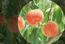 水蜜桃:蔷薇科、桃属植物。南方品种群中肉质柔软多汁呈软溶质的一类品种。果实顶部平圆,熟后易剥皮,多粘核。