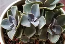 紫珍珠是景天科石莲花属的多年生肉质草本植物。植株中小型;叶片肉质,匙形,呈莲座状紧密排列;叶片粉紫色,叶缘呈粉白色,光照充足时颜色亮丽,不足时叶色会呈现深绿色或灰绿色,叶面光滑,被轻微白粉,…全部>>