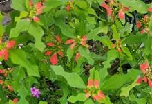 猩猩草:常绿或半常绿灌木,盆栽时株高0.5米-2米,在亚热带地区可长到6米以上。茎直立而光滑,单叶互生,卵状椭圆形至阔披针形,具不规则的深缺刻。长10-15厘米。花小,有蜜腺,排列成密集的伞房花序。…全部>>
