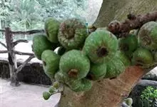 大果榕是桑科榕属的小乔木,株高可达10米;幼枝被柔毛;叶互生,宽卵状心形或近圆形;雄花无梗、匙形、花丝长,雌花生于雌株榕果内,子房白色;榕果簇生于树干基部或老茎短枝上、扁球形或陀螺形,…全部>>