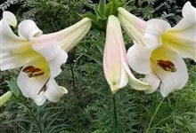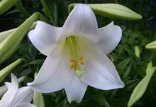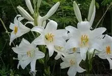 麝香百合:在中国台湾亦称铁炮百合。鳞茎球形或近球形,高2.5-5厘米;鳞片白色。茎高45-90厘米,绿色,基部为淡红色。叶散生,披针形或矩圆状披针形,两面无毛。花单生或2-3朵;花喇叭形,白色,筒外…全部>>