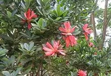 滇山茶:灌木至小乔木,有时高达15米,嫩枝无毛。叶阔椭圆形,上面干后深绿色,发亮,下面深褐色,无毛,侧脉6-7对,边缘有细锯齿。花顶生,红色,直径10厘米,无柄;苞片及萼片10-11片,花瓣红色,…全部>>