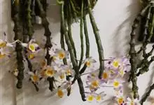 肿节石斛,是兰科石斛属多年生草本植物。肿节石斛茎斜立或下垂,肉质,圆柱形;叶纸质,长圆形;花序生于已落叶老茎上部,花白色,上部紫红色,有香气;花瓣宽长圆形,唇瓣白色,中部以下金黄色,上部紫红色,…全部>>
