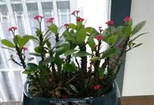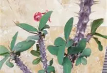 虎刺梅:别称铁海棠,是蔓生灌木植物。茎多分枝,长60-100厘米,直径5-10毫米,具纵棱,密生硬而尖的锥状刺,刺长1-1.5厘米,直径0.5-1.0 毫米,常呈3-5列排列于棱脊上,呈旋转。叶互生…全部>>