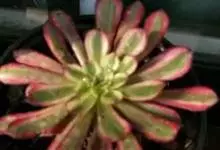 红缘莲花掌属蔷薇目、景天科植物,原产大西洋的加那利群岛。质厚,蓝绿色,被白霜,叶缘红褐色。聚伞花序,花浅黄色,有时带红晕。叶形叶色较美,有一定的观赏价值,多盆栽用于点缀室内;可放置于电视、电脑旁,…全部>>