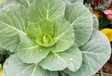 甘蓝,十字花科芸薹属二年生草本植物,茎肉质,矮而粗壮,不分枝;叶片多,质厚,层层包成球状体,为乳白或淡绿色;花瓣淡黄色,为宽长倒卵形或近圆形;果实为圆柱形,两侧稍扁,果柄直立开展。花期4月,果期5月。…全部>>