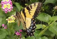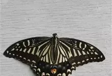 金凤蝶,是鳞翅目凤蝶科凤蝶属动物。金凤蝶为中型凤蝶,翅展70-84毫米,翅背面底色黑褐色,翅脉黑色,翅室具黄斑;前翅背面基部呈暗黄色,亚外缘为黑色,内具一列小黄斑;后翅背面亚外缘区具黑宽边,…全部>>