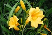 黄花菜 别名金针菜、柠檬萱草等,是阿福花科萱草属的多年生宿根性草本植物。根近肉质,中下部常有纺锤状膨大;叶7~20枚,长50~130cm,宽6~25mm;花葶长短不一,花梗较短,花多朵,…全部>>