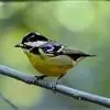 黄腹山雀是雀形目山雀科山雀属鸟类。虹膜褐色或暗褐色;嘴蓝黑色或灰蓝黑色;头、喉胸斑黑色,颊斑、颈后斑白色;上体蓝灰色,腰银白色;翼具两排白色点斑;下胸、腹鲜黄色;尾黑色,…全部>>