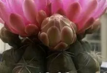 绯花玉 Speg.)是仙人掌科、裸萼球属多肉植物,植株呈扁球形,表皮墨绿色,刺针状,每个刺座有5枚灰色周刺,花生于球体顶端,夏季开花,花色有白、粉红、深红等。果实纺锤形,深灰绿色,种子黑色。…全部>>