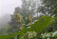 通脱木 K. Koch)是五加科通脱木属的常绿灌木或小乔木,茎干粗壮,叶片宽大,基部为倒卵状长圆形或卵状长圆形,边缘全缘或疏生粗齿,侧脉和网脉不明显;叶柄粗壮,密生白色或淡棕色星状绒毛;花淡黄白色,…全部>>