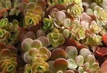 圆叶景天,景天科常绿多年生肉质草本植物,匍匐型生长,叶片对生,尖端钝圆,全光照条件下,叶片秋季变红,花瓣黄色或白色,花期4至6月。喜向阳和偏干环境,只要栽培在向阳、偏干的地方,就能茂盛生长;抗寒性强,…全部>>