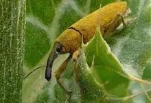 甘薯小象甲是鞘翅目蚁象科甘薯小象甲属昆虫,又称甘薯蚁象、甘薯象、番薯臭虫。成虫除触角、前胸、中胸、足为赤褐色外,鞘翅、腹部为暗蓝色,有金属光泽;体型细长,…全部>>