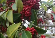 构骨叶冬青学名枸骨,又名猫儿刺、老虎刺、八角刺、鸟不宿、构骨、狗骨刺、猫儿香和老鼠树。常绿灌木或小乔木,高1-3米,二年枝褐色,三年生枝灰白色,叶片厚革质,花淡黄色,果球形,直径8-10毫米,成熟时…全部>>