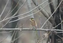黄眉鹀是雀形目鹀科鹀属鸟类,体型中等偏小。雄鸟头部主要为黑色,冠纹白色,眉纹前段黄色而后段白色,喉白而具黑色细碎纵纹;上体主要为栗褐色,背具黑褐色纵纹;翼主要为黑褐色,…全部>>