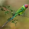 紫红头鹦鹉是鹦形目鹦鹉科的鸟类。鸟体为绿色,头部中间为红色,下颏下方延伸到脸颊下方,环绕整个颈部有一条黑色的环状羽毛,并连接一条蓝绿色的条状羽毛。…全部>>