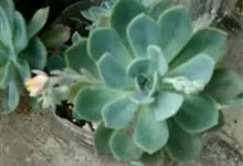 蓝石莲是景天科、拟石莲花属的多肉植物。茎部粗壮,成熟植株茎部木质化。叶片莲座型密集排列,株径不会很大,叶片相对较薄,常年绿色,表面布有白色粉末,中部凹陷,呈倒水滴状。叶尖较尖,叶缘光滑无褶皱,…全部>>