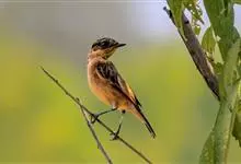黑喉石鵖,雀形目鹟科石鵖属小型鸣禽,俗名谷尾鸟、黑喉石。其体色为黑褐色。雄鸟头部、背部、两翼及尾黑色,颈侧及翼上具白斑,胸部和腹侧红棕色,腰及尾下覆羽白色。雌鸟体色为褐色,上体具深色纵纹,胸部染棕色,…全部>>