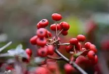 火棘 H. L. Li)是蔷薇科火棘属常绿灌木,老枝呈暗褐色;叶片呈倒卵形,边缘有钝锯齿,齿尖向内弯,两面皆无毛;叶柄短,无毛或嫩时有柔毛;花序是复伞房状,花瓣呈白色近圆形;果球近圆形,…全部>>