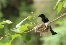 发冠卷尾是中型鸟类,体长28-35厘米。通体绒黑色缀蓝绿色金属光泽,额部具发丝状羽冠,外侧尾羽末端向上卷曲。栖息于海拔1500米以下的低山丘陵和山脚沟谷地带,多在常绿阔叶林、次生林或人工松林中活动。…全部>>