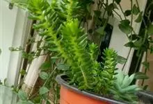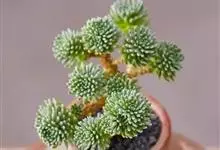 小松绿是景天科景天属植物,多肉植物,植株低矮,多分枝,株型近似球状,新枝浅绿色,以后逐渐转为灰白色,肉质叶近似针状。枝条下部的老叶容易干枯,贴在枝干上,形成类似松树皮般的龟裂,数月才脱落,…全部>>