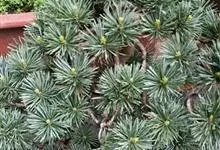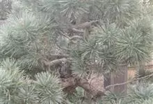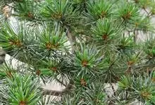 日本五针松,是松科松属常绿乔木。其树冠圆锥形;树皮灰黑色,不规则鳞片状剥裂;小枝密生淡黄色柔毛;叶蓝绿色,较短细,有白色气孔线,叶鞘早落;球果卵圆形或卵状椭圆形。花期5月中旬,果熟期翌年10月。…全部>>