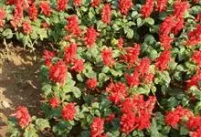 一串红,又称爆仗红、象牙红,为唇形科鼠尾草属植物。花序修长,色红鲜艳,花期又长,适应性强,为中国城市和园林中最普遍栽培的草本花卉。原产巴西、南美洲。喜温暖和阳光充足环境。不耐寒,耐半阴,忌霜雪和高温,…全部>>