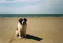 圣伯纳犬,别名巴里汉德,属于大型工作犬,肩高约65~90厘米,体重约50~90千克。圣伯纳犬身体强壮,被毛红褐色和白色相间,头圆而宽大。颈部强壮,胸宽深,背直。前肢长直,腕关节略前倾,后肢腿骨粗壮,…全部>>