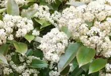 石楠 Kalkman),是蔷薇科石楠属的常绿乔木,高5~12米,株型紧凑,树冠圆球形。树枝为褐灰色;鳞片为褐色,没有毛;叶片革质,长椭圆至侧卵状椭圆形,有锯齿,新叶红色光亮。复伞房花序,白色小花,…全部>>