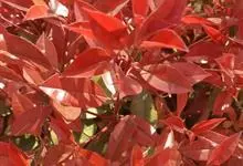 红叶石楠 是蔷薇科,石楠属杂交种,为常绿小乔木或灌木,乔木高可达5米、灌木高可达2米。叶片革质,长圆形至倒卵状、披针形,叶端渐尖,叶基楔形,叶缘有带腺的锯齿,花多而密,复伞房花序,花白色,梨果黄红色,…全部>>