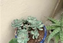 蓝石莲是景天科、拟石莲花属的多肉植物。茎部粗壮,成熟植株茎部木质化。叶片莲座型密集排列,株径不会很大,叶片相对较薄,常年绿色,表面布有白色粉末,中部凹陷,呈倒水滴状。叶尖较尖,叶缘光滑无褶皱,…全部>>
