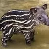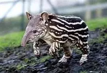 低地貘:体长达1.7-2.1米,尾巴长5-10厘米,体重200-250千克,肩高0.7-1.1米。呈灰棕色至深褐色,腹部色淡。颈部及耳缘白色,由头顶至颈背有一道短而直立的鬃毛,带黑色,身上的毛短而光…全部>>