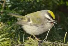 戴菊小型鸟类,体长9~10厘米。上体橄榄绿色。头顶中央柠檬黄色或橙黄色羽冠,两侧有明显的黑色侧冠纹,眼周灰白色。腰和尾上覆羽黄绿色,两翅和尾黑褐色,尾外翈羽缘橄榄黄绿色,初级和次级飞羽羽缘淡黄绿色,…全部>>