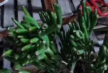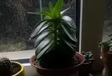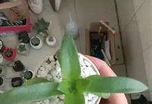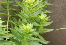 筒叶花月,是景天科青锁龙属的多年生草本植物。植株多分株,灌木状,茎较粗壮,圆柱形,表皮灰褐色;叶片肉质,互生,呈圆筒状,簇生于茎或分枝顶端,叶端呈斜截形,截面为椭圆形;花呈星状,淡白色;花期秋季。…全部>>