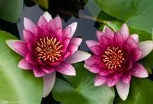 红花睡莲,多年生浮水植物。叶浮于水面,卵形,革质,表面绿色,背面紫红色,幼叶红色,花昼开夜合,浮于水面挺出水面,中午开得最大,半夜闭合,故名“子午莲”,花瓣多数,花红色,花期7—8月。原产欧洲及北非…全部>>