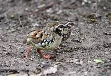 褐胸山鹧鸪:雄鸟体长22厘米,体重310克;雌鸟体长23厘米,体重220-275克。前额皮黄白色,头顶橄榄褐色。眼部的裸皮鲜红色,有一条宽阔的皮黄白色眉纹一直延伸到颈的侧部。上体亮橄榄褐色,具黑色横斑。…全部>>