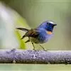 棕胸蓝姬鹟:属小型鸣禽,体长10-13厘米,体重6-10克,是一种体型很小的灰蓝及棕色鹟,雌雄羽色不同,雄鸟羽色艳丽,雌鸟羽色暗淡。雄鸟上体深蓝色,胸橙黄色,下腹灰白色。亚成鸟具褐色斑驳。…全部>>