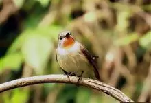 橙胸姬鹟:体长12-16厘米,是一种体型略小的林栖型鹟。尾黑而基部白,上体橄榄褐色,额具一白色横带,两端向上延伸至眼上形成眉斑。翼橄榄色,下体灰。成年雄鸟额上有狭窄白色并具小的深红色项纹,常不明显。…全部>>