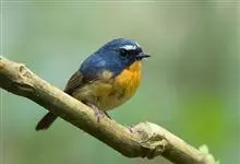 棕胸蓝姬鹟:属小型鸣禽,体长10-13厘米,体重6-10克,是一种体型很小的灰蓝及棕色鹟,雌雄羽色不同,雄鸟羽色艳丽,雌鸟羽色暗淡。雄鸟上体深蓝色,胸橙黄色,下腹灰白色。亚成鸟具褐色斑驳。…全部>>