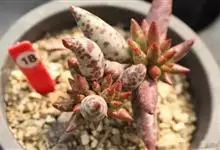 筒叶花月,是景天科青锁龙属的多年生草本植物。植株多分株,灌木状,茎较粗壮,圆柱形,表皮灰褐色;叶片肉质,互生,呈圆筒状,簇生于茎或分枝顶端,叶端呈斜截形,截面为椭圆形;花呈星状,淡白色;花期秋季。…全部>>