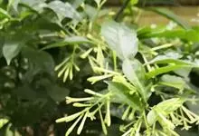 夜香树是茄科、夜香树属直立或近攀援状灌木。枝条细长而下垂。叶有短柄,叶片矩圆状卵形或矩圆状披针形,全缘,顶端渐尖,基部近圆形或宽楔形,两面秃净而发亮,有6-7对侧脉。伞房式聚伞花序,腋生或顶生,…全部>>