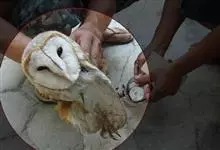 仓鸮,是鸮形目草鸮科草鸮属鸟类,其头大而圆,面盘白色,有时沾棕,眼先棕色,眼周浅棕色;面盘四周围有一棕色或橙黄色领环,颈侧及肩浅棕黄色,微具黑褐色及白色斑点;其余上体浅灰色,羽缘棕黄色,…全部>>